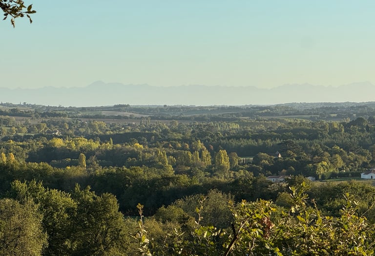Stay at La Chartreuse, where timeless elegance meets warm hospitality. Just a short walk from historic Larressingle, with views towards the distant Pyrenees across the vineyards and sunflower fields
